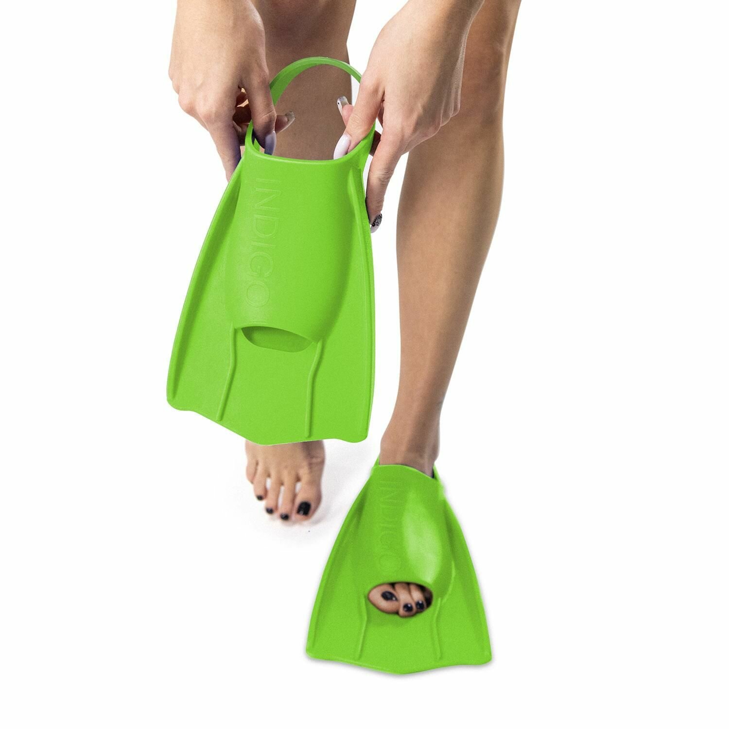 Ласты для бассейна, плавания, дайвинга короткие с открытой пяткой INDIGO SKAT 37-38 Салатовый