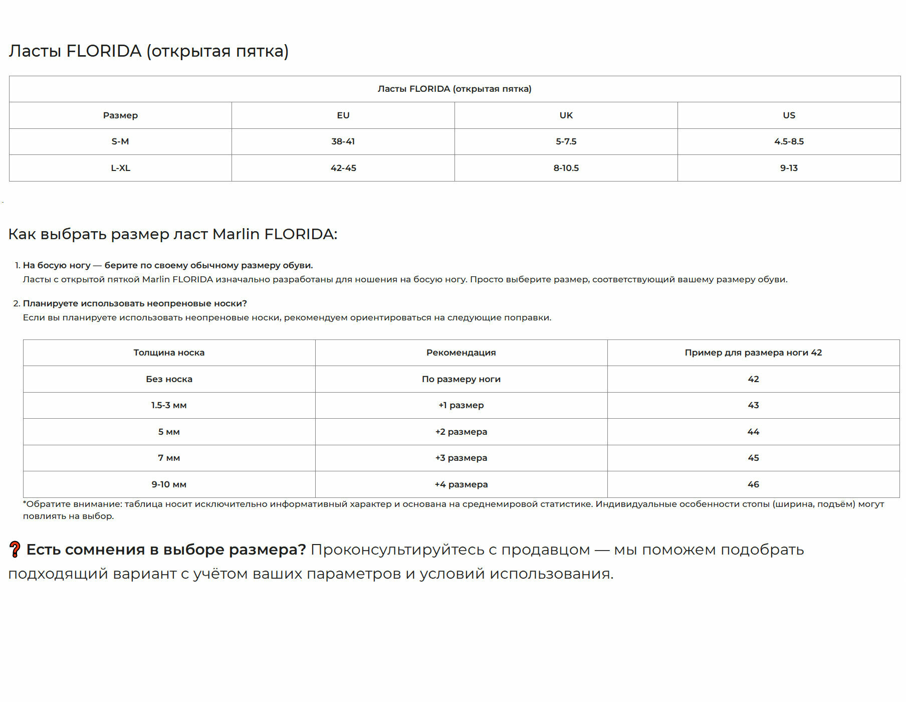 Ласты для снорклинга Marlin FLORIDA 38/41 (S/M), черный, с открытой пяткой интересное: