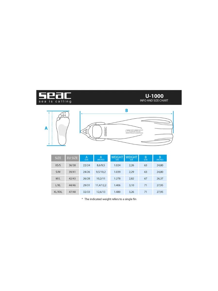 Ласты для плавания SEAC SUB U-1000 SLING STRAP BLUE, р-р L-XL/44-46