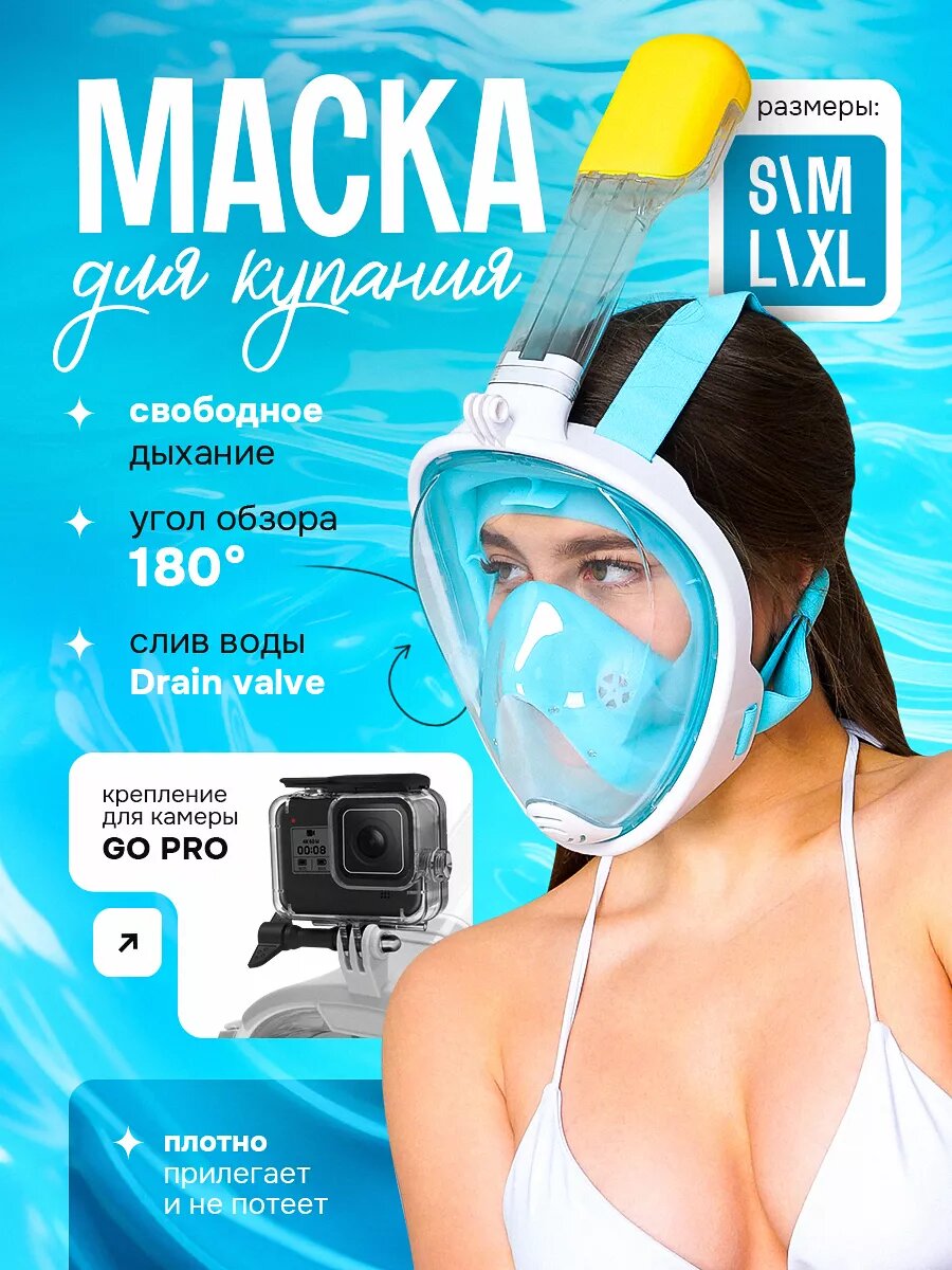 Маска для снорклинга TannyStore, голубая, для взрослых, размер S/M интересное: