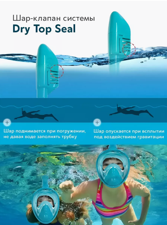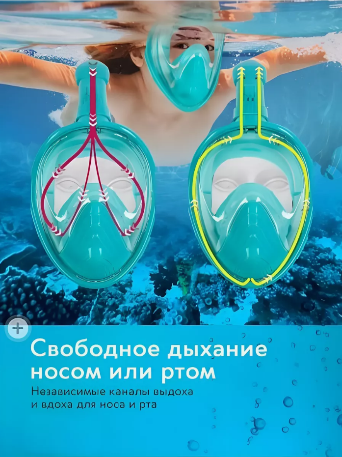 Подводная маска для снорклинга EasyBreath XS, бирюзовый интересное: