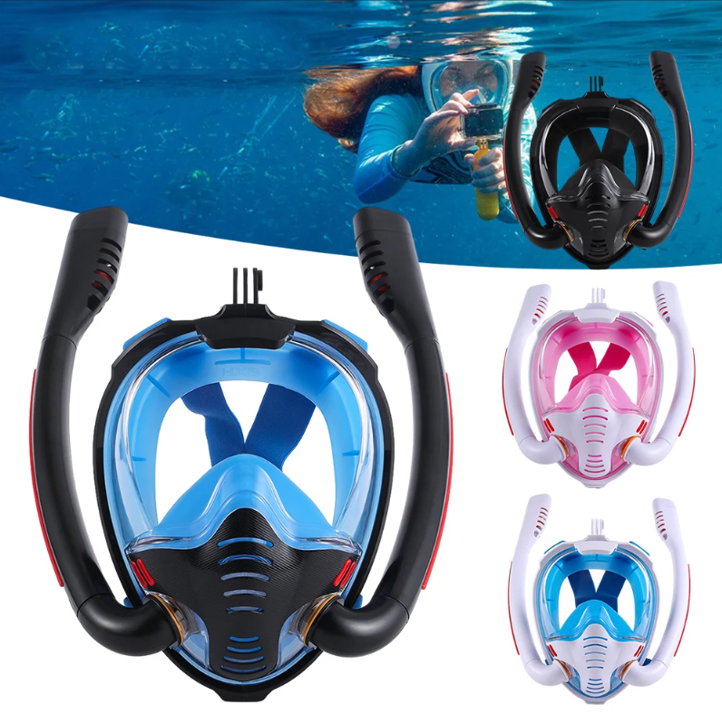 Маска для плавания и снорклинга L/XL c двойной трубкой, черный интересное: