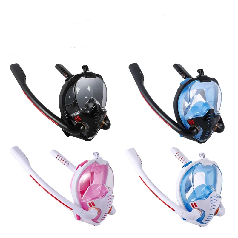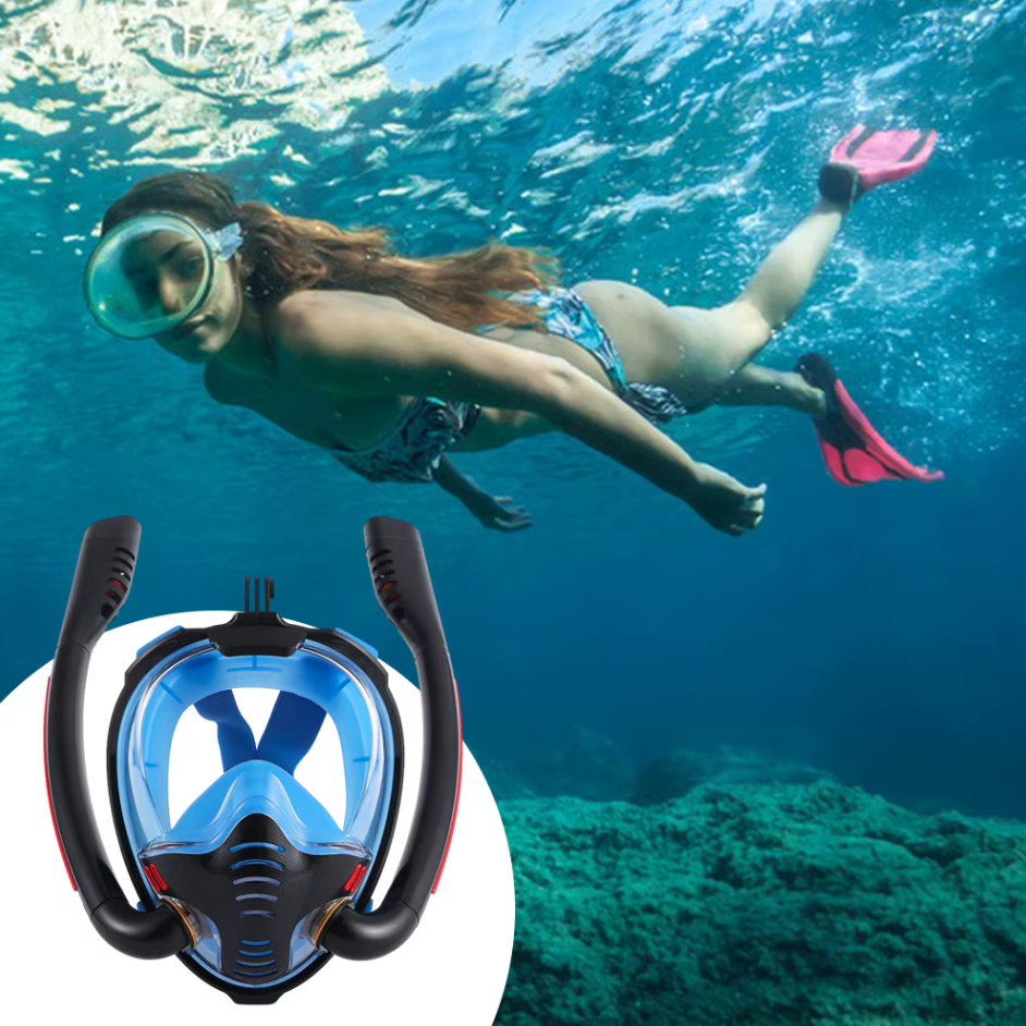 Маска для плавания и снорклинга L/XL c двойной трубкой, черно-синий интересное: