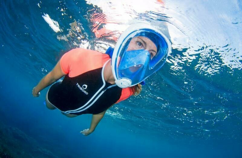 Подводная маска для снорклинга EasyBreath S/M, синяя интересное: