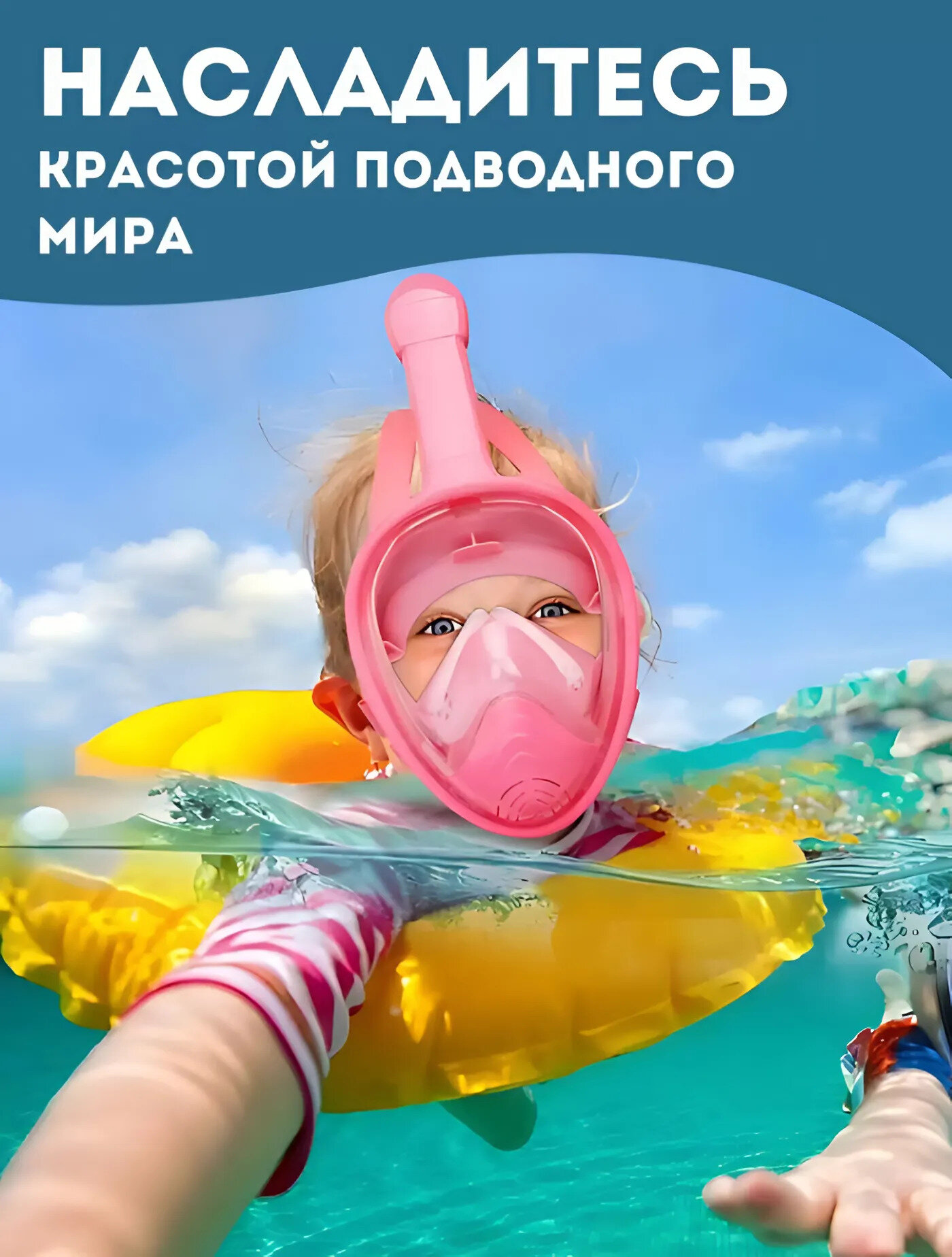 Полнолицевая детская маска для подводного плавания с трубкой, Маска для снорклинга с креплением для экшн-камеры, XS розовый