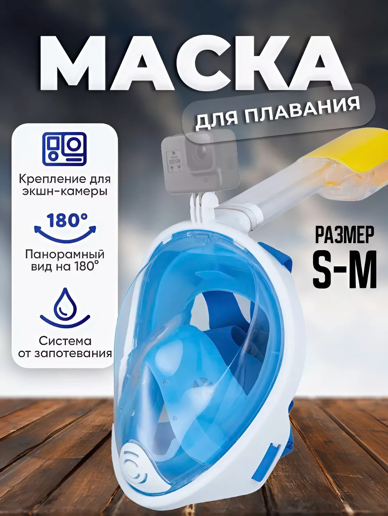 Купить Полнолицевая маска для подводного плавания с трубкой, Маска для снорклинга с креплением для экшн-камеры, S/M синий
