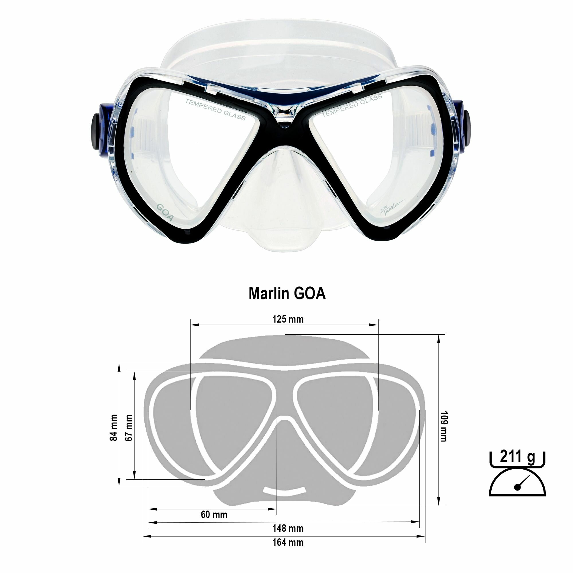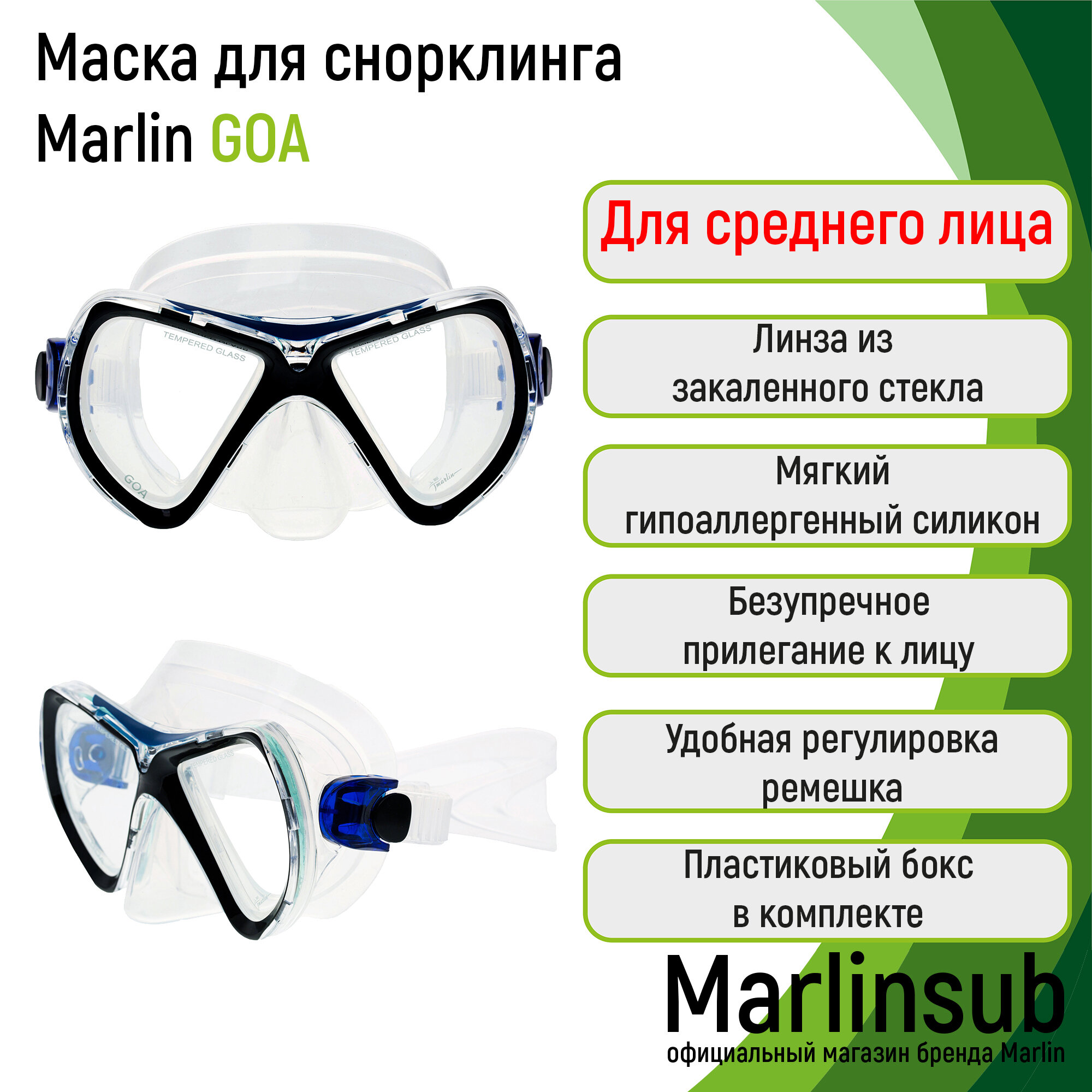 Маска для дайвинга и снорклинга Marlin GOA, синий/черный/прозрачный интересное: