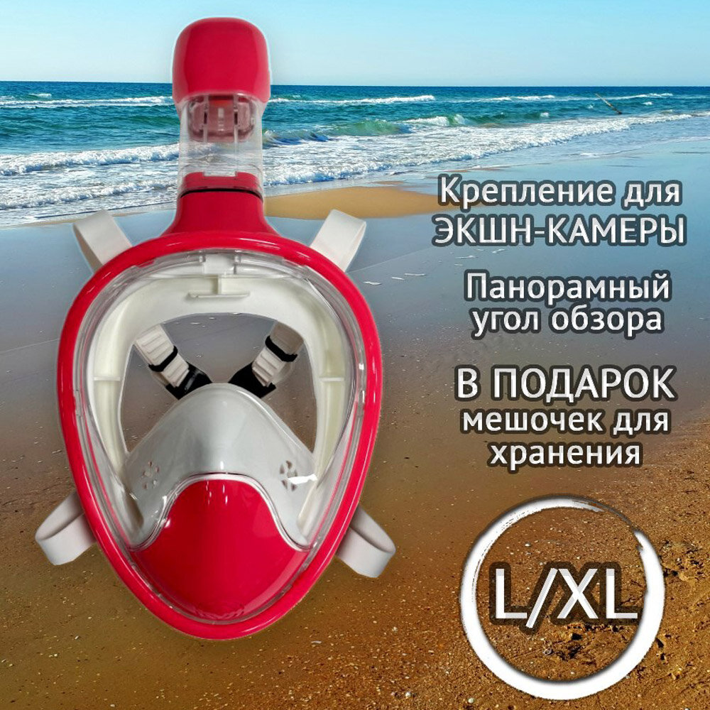 Подводная маска для плавания полнолицевая, размер L, белый/розовый интересное: