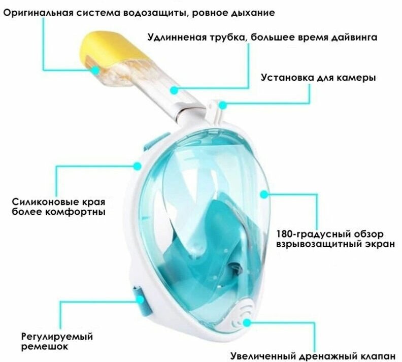 Маска для снорклинга голубая S/M / полнолицевая маска / маска для плавания / маска для подводного плавания / маска для дайвинга