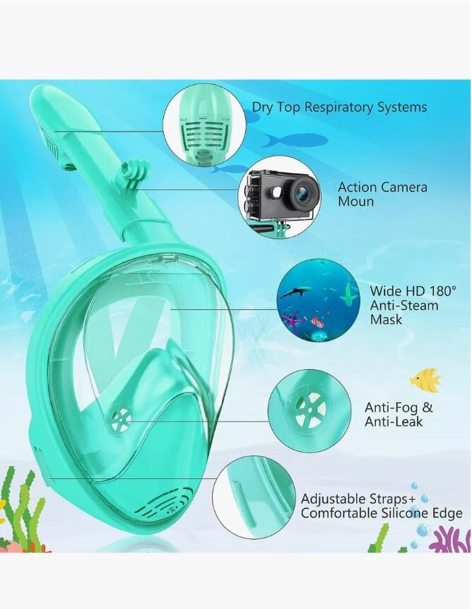 Ниже Вы можете прочитать отзывы на Маска для снорклинга детская зеленая XS / полнолицевая маска / маска для плавания / маска для подводного плавания / маска для дайвинга, ознакомится с подробными характеристиками, посмотреть интересные обзоры и фотографии на Маска для снорклинга детская зеленая XS / полнолицевая маска / маска для плавания / маска для подводного плавания / маска для дайвинга.