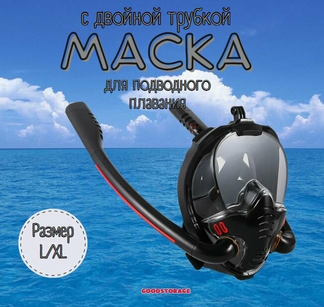 Маска для снорклинга с двумя трубками L/XL, черная интересное: