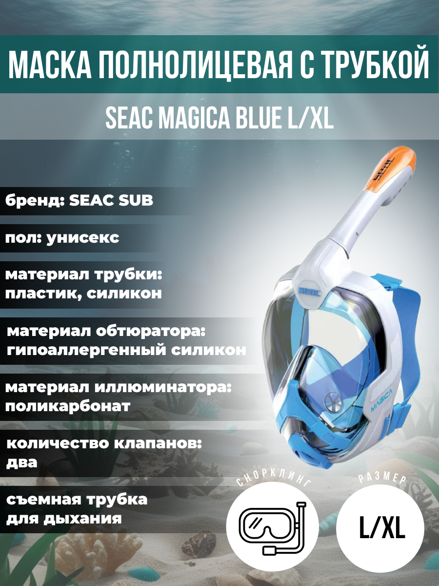 Маска для плавания полнолицевая SEAC SUB MAGICA BLUE/ORANGE, р-р L/XL