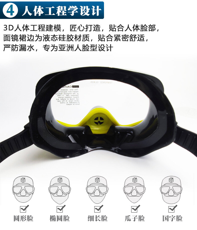 Маска для подводного плавания YEXIZE HD, взрывозащищенная, дренажный клапан, зеркальная коробка, черная/белая