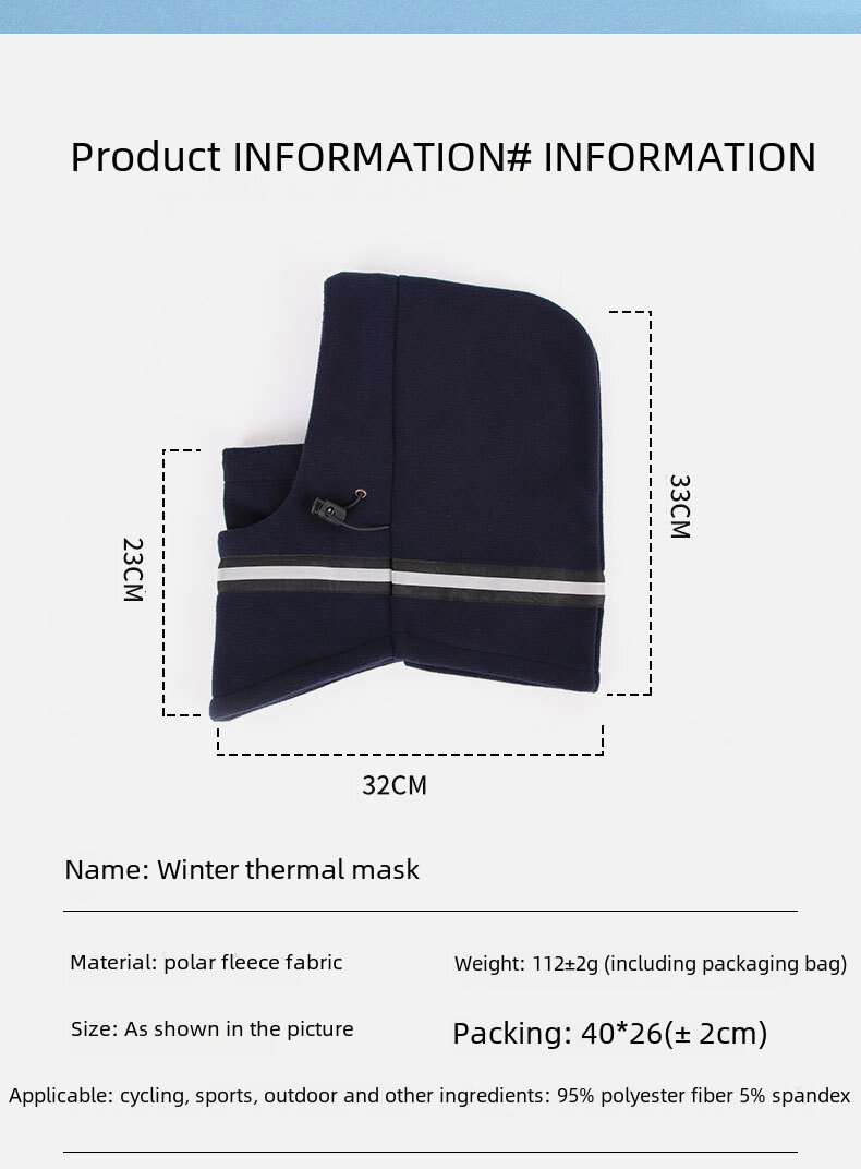 Маска велосипедная Ruidong TT-FG-01, осенне-зимняя, темно-синяя, светоотражающая полоска