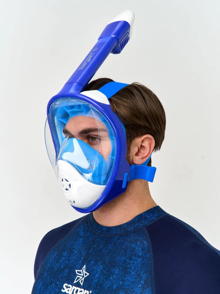 СохранитьМаска для снорклинга и подводного плавания с трубкой SARGAN PLANETA OCEAN размер L-XL синий/белый интересное: