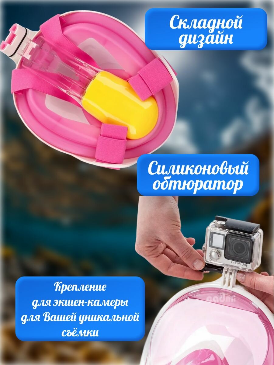 Подводная маска для снорклинга S/M розовая интересное: