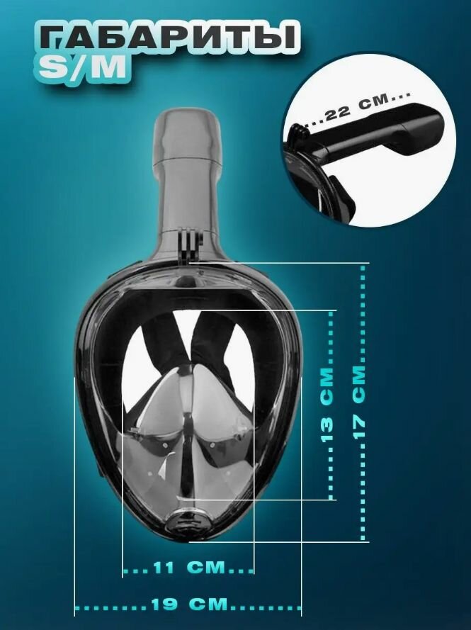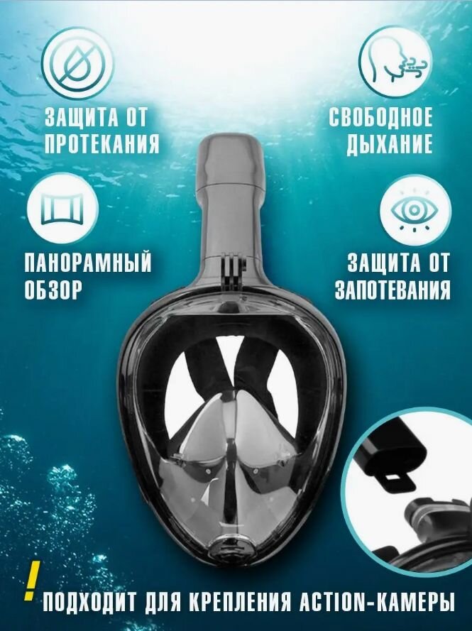 Подводная маска для плавания , полнолицевая маска для снорклинга с креплением для экшн-камеры, размер L/XL, черный интересное: