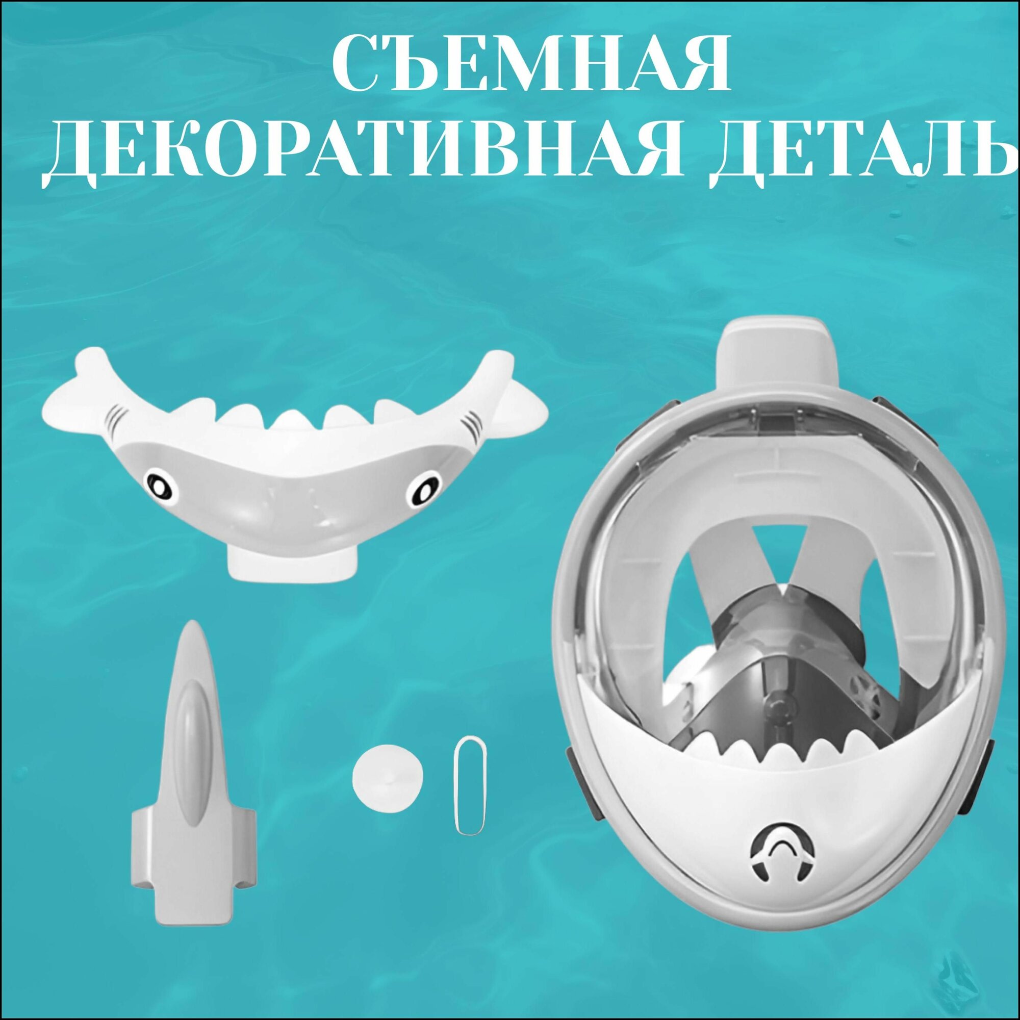 Полнолицевая маска антитуман детская для плавания, дайвинга, сноркелинга, снорклинга акула серая интересное: