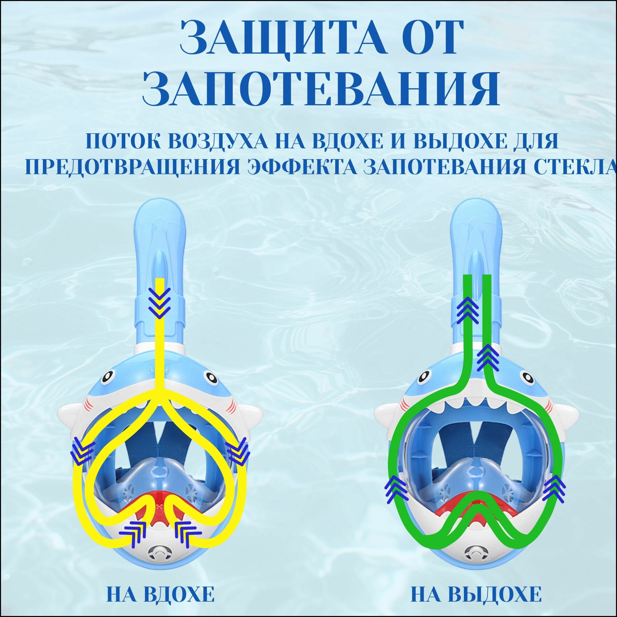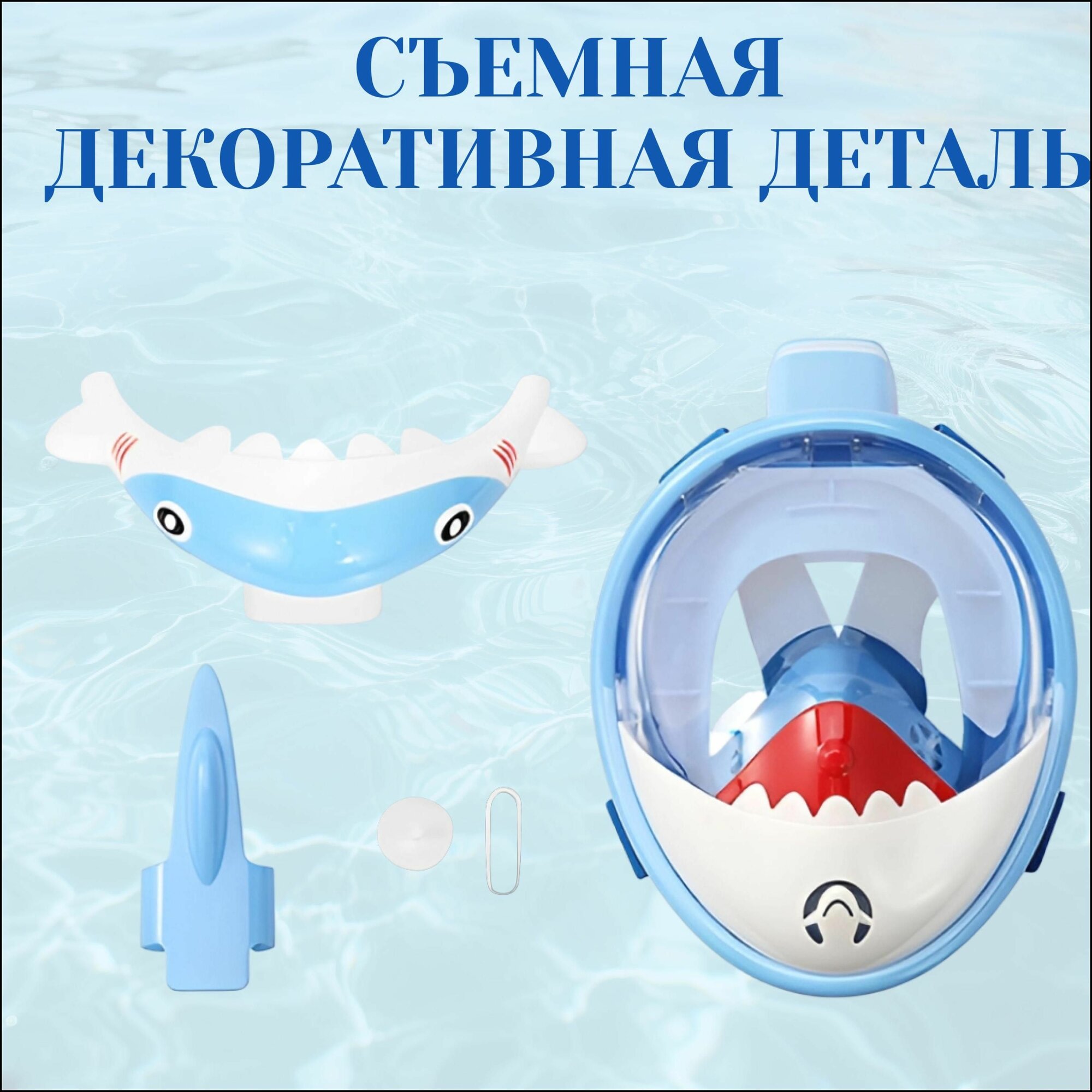 Полнолицевая маска антитуман детская для плавания, дайвинга, сноркелинга, снорклинга акула голубая интересное: