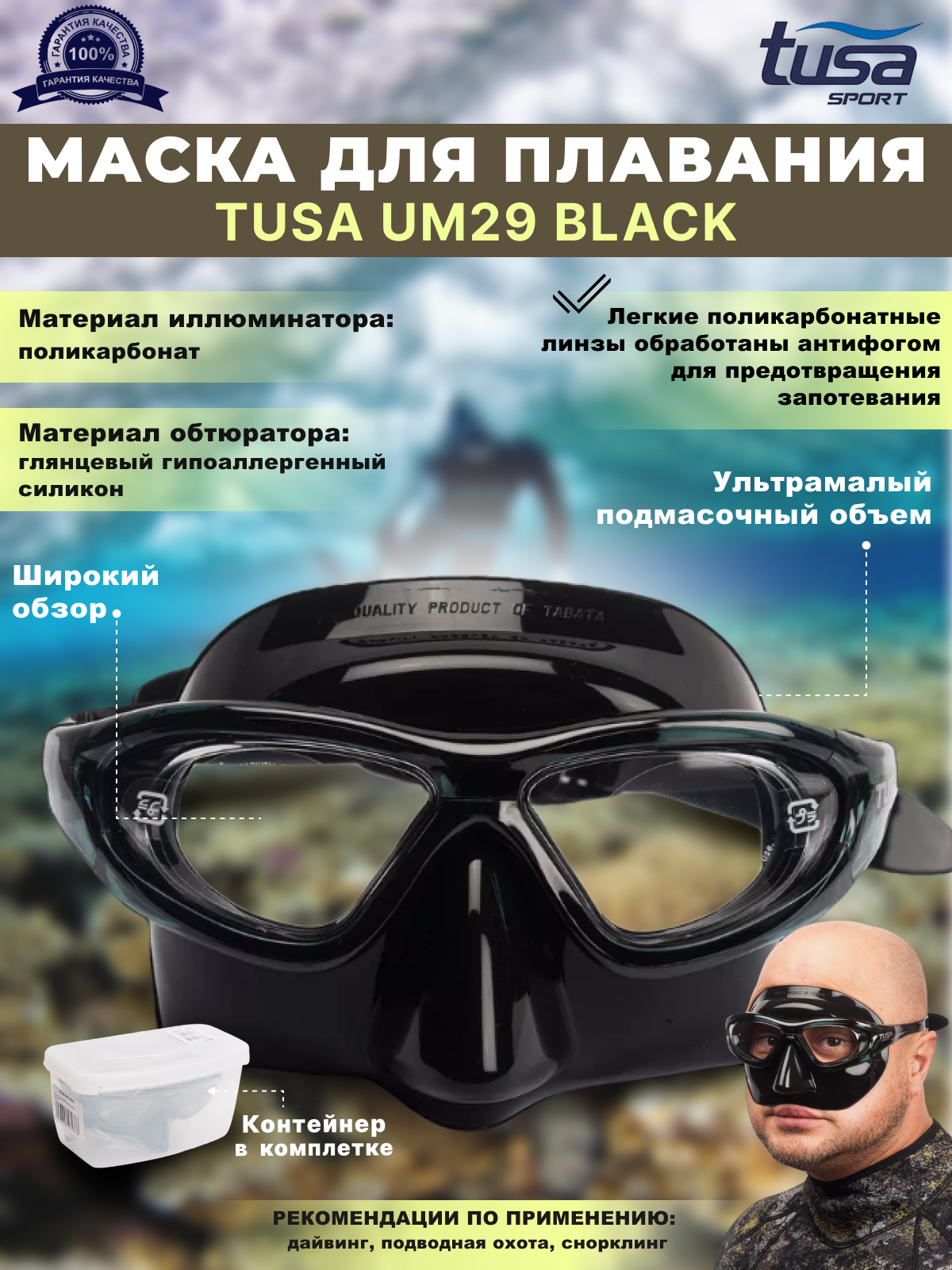 СохранитьМаска для плавания TUSA SPORT UM-29 черный силикон интересное: