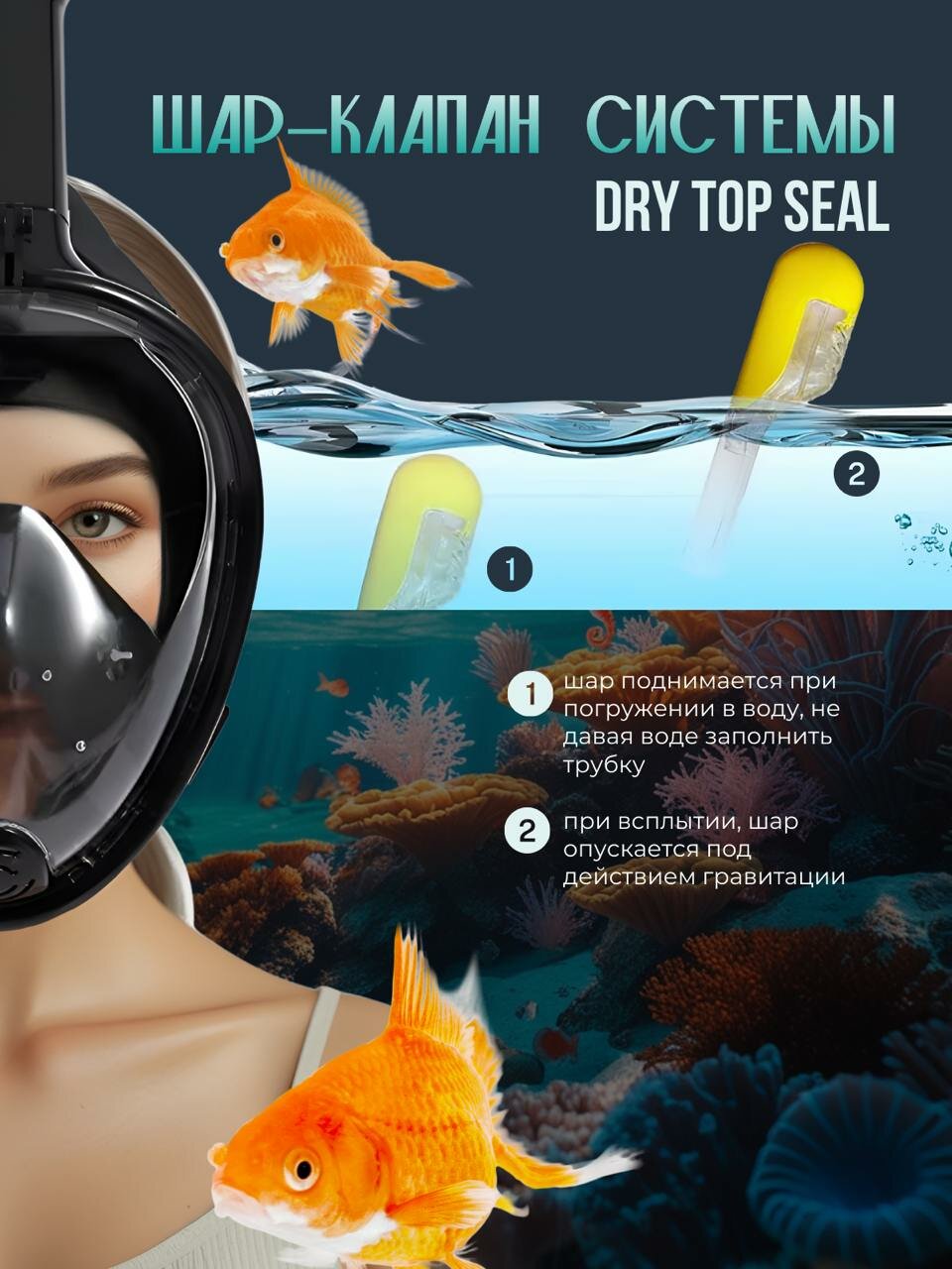 Полнолицевая подводная маска для плавания (снорклинга) s/m черная интересное: