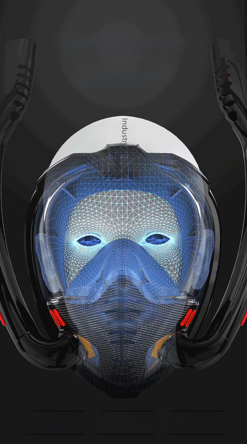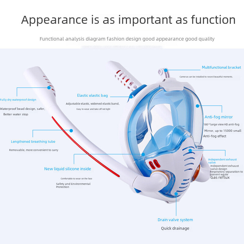 Маска для подводного плавания, полнолицевая, силиконовая, двухтрубная, белая/синяя