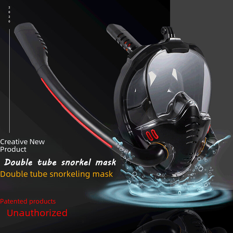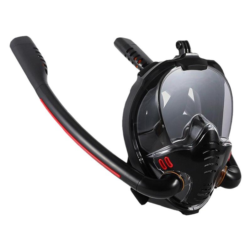 Маска для подводного плавания, двухтрубная, силиконовая, полнолицевая, взрослая, черная