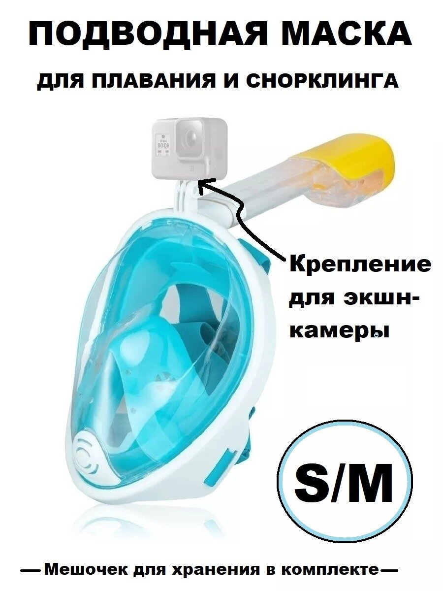 Подводная маска для плавания, для снорклинга, размер S/M, синяя