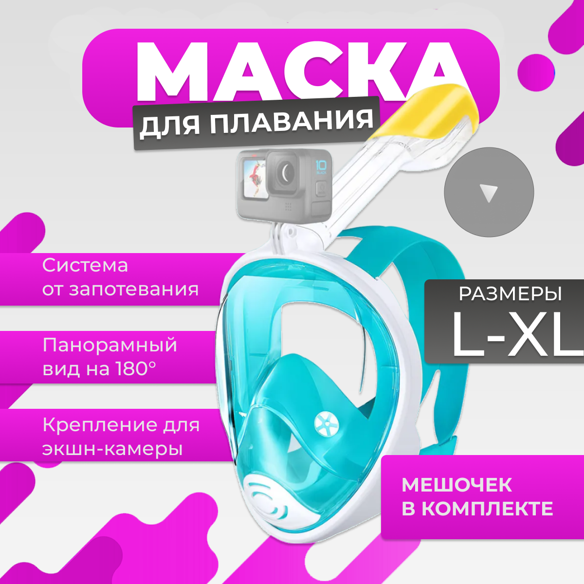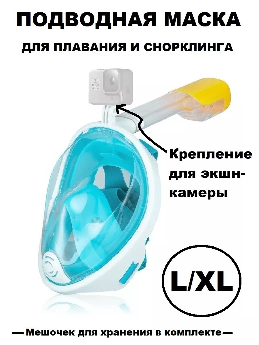 Подводная маска, для плавания, для снорклинга, размер L/XL, синяя
