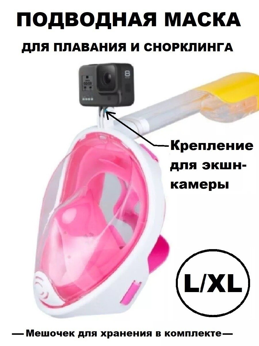 Подводная маска для плавания, для снорклинга, размер L/XL, розовая интересное: