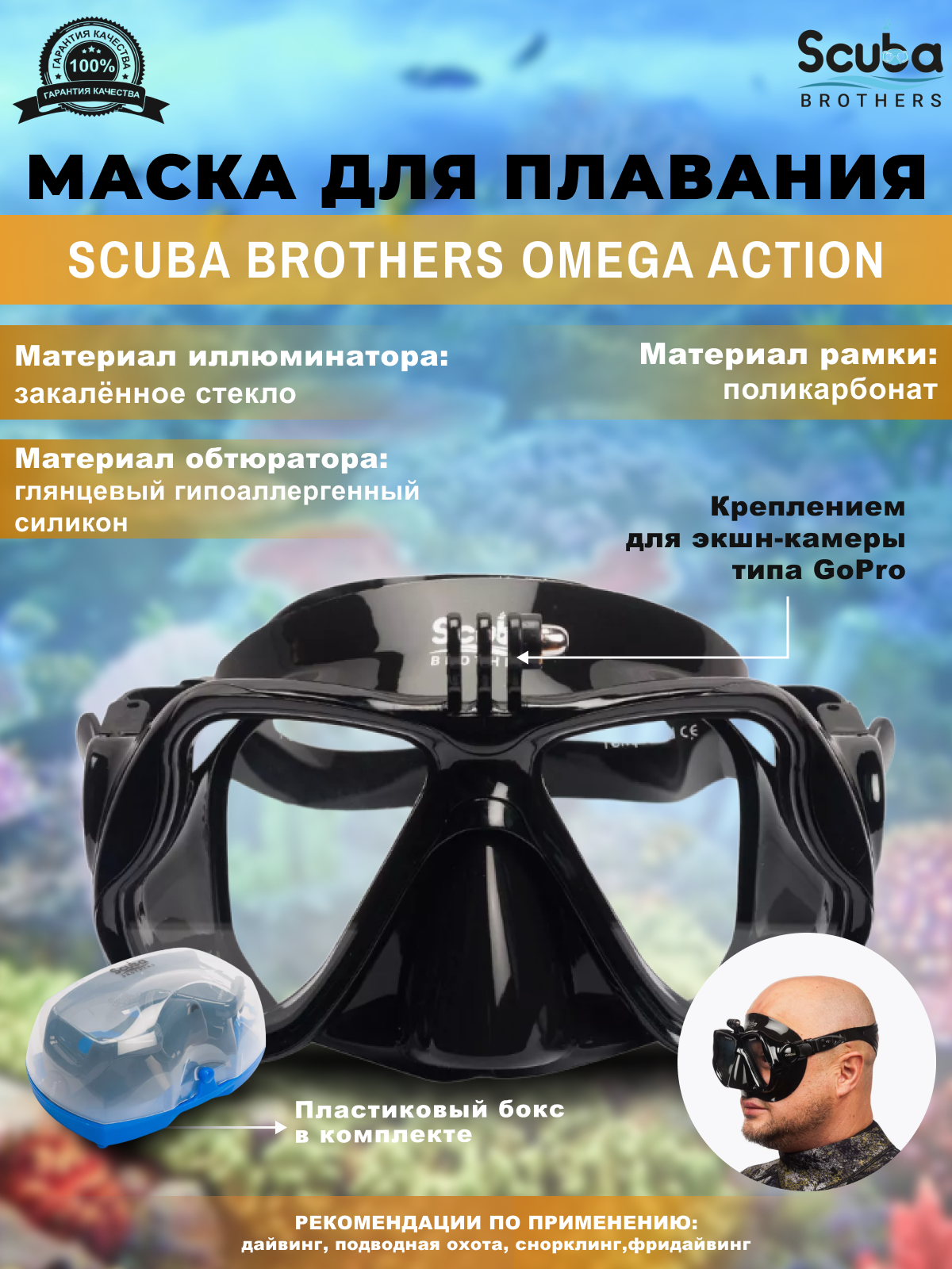 Купить Маска для плавания SCUBA BROTHERS OMEGA ACTION, с креплением для экшн-камеры