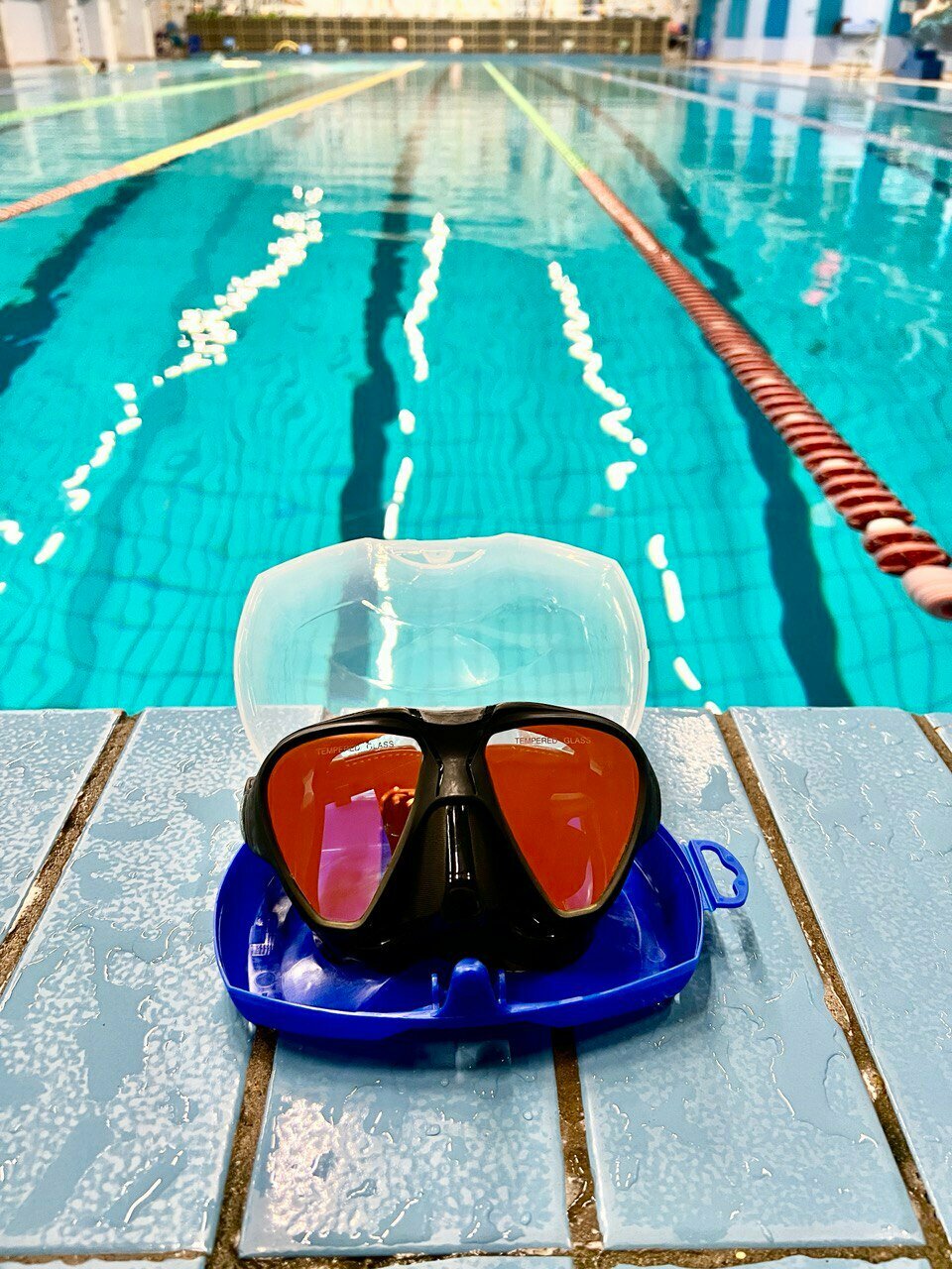 Очки для дайвинга "Новые", с линзами, силиконовые, черные, с синим покрытием