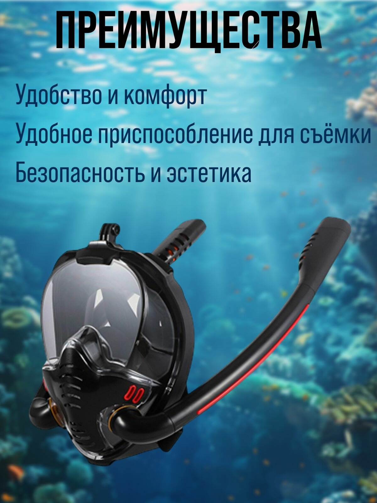 Полнолицевая маска для снорклинга черная S/M интересное: