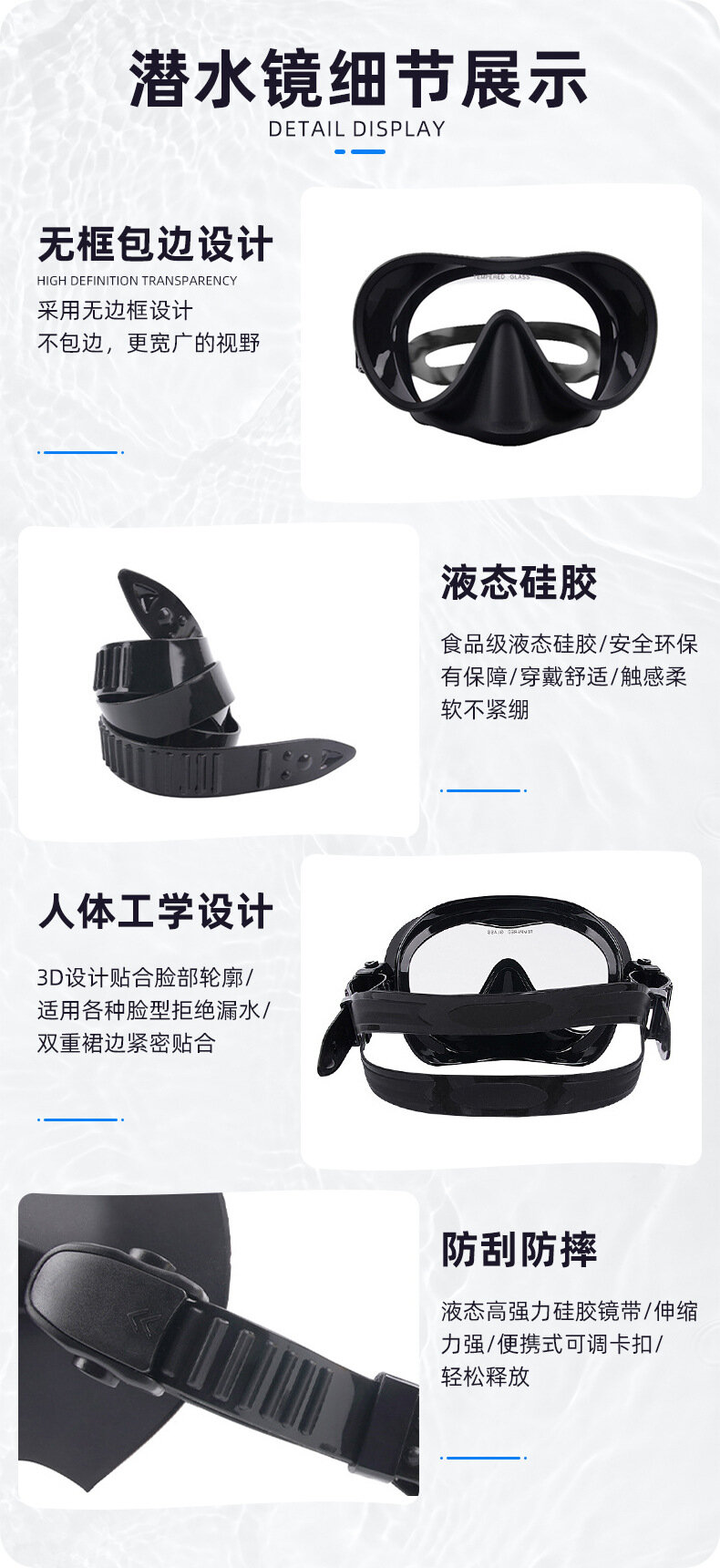 Очки для подводного плавания M3002, с маской, закаленное стекло, жидкий силикон HD