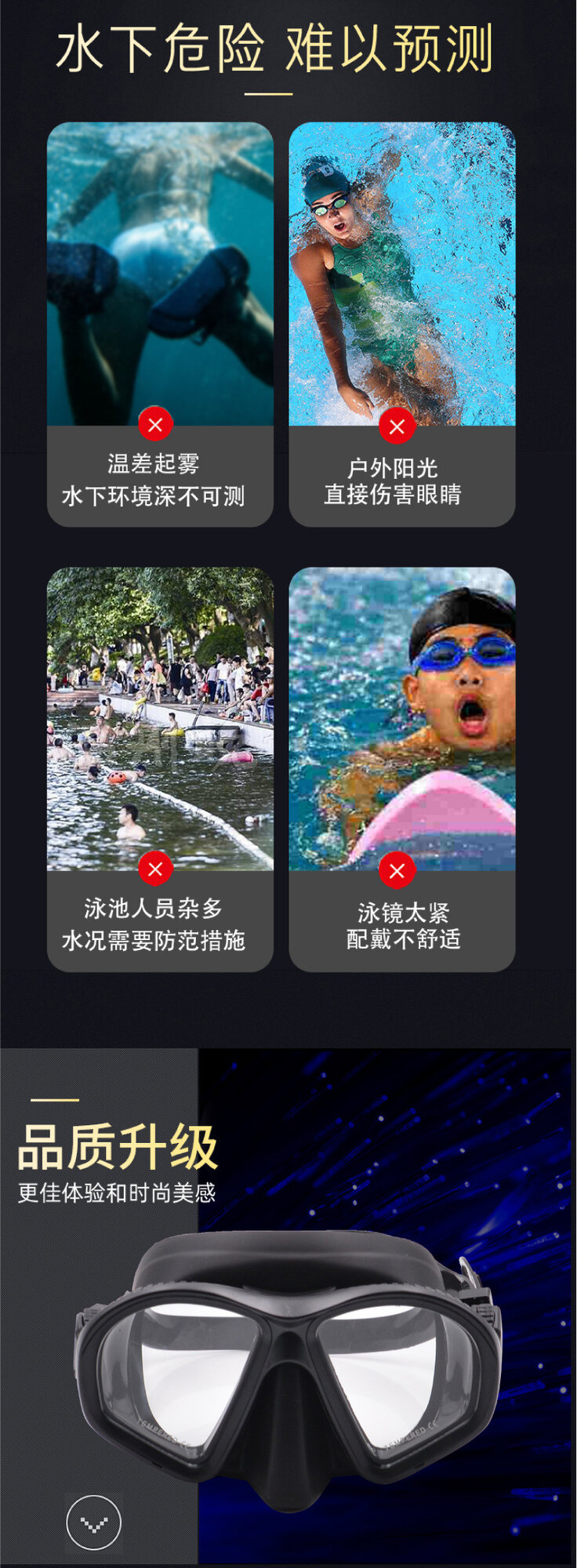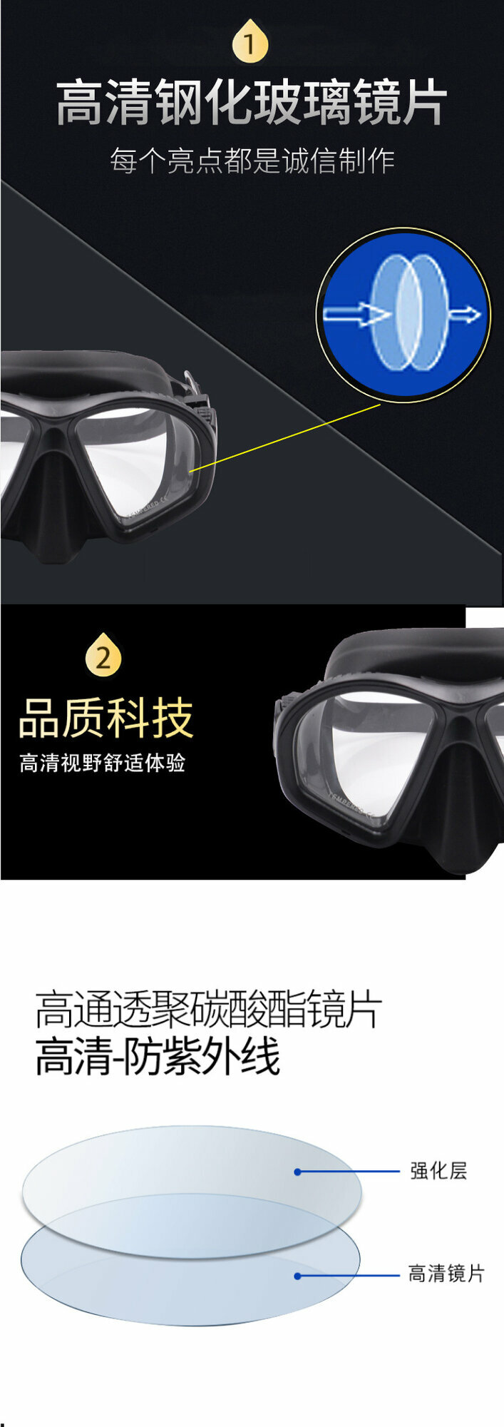 Очки для дайвинга "Новые", с линзами, силиконовые, черные, с синим покрытием