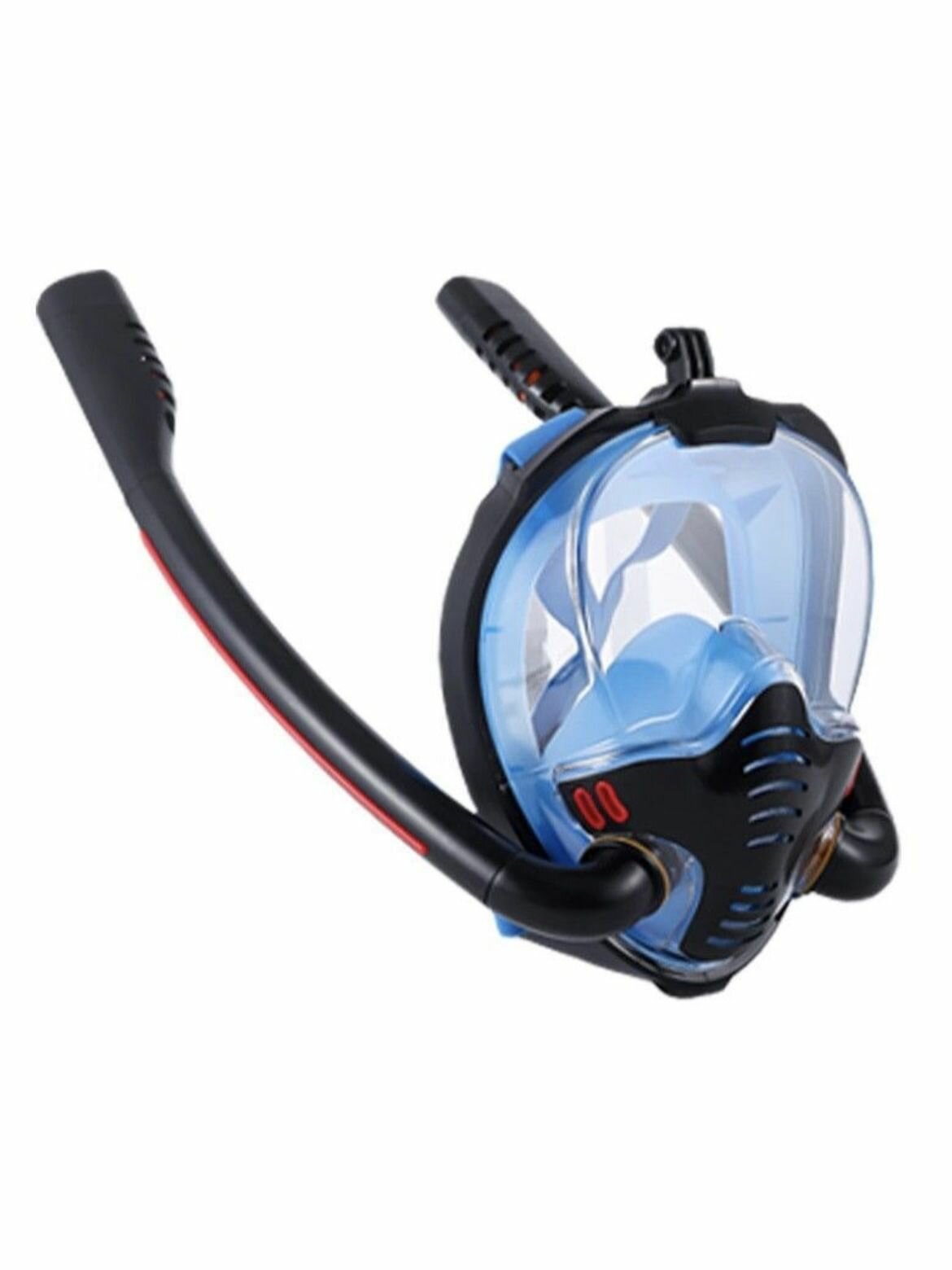 Полнолицевая маска для снорклинга 2 трубки и креплением для экшн камеры. черно-синяя. L/XL интересное: