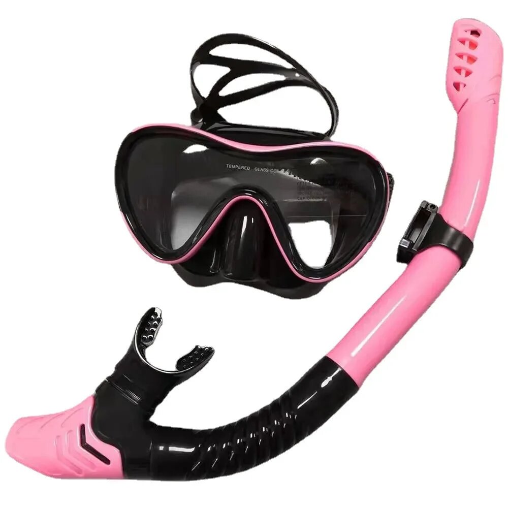 Очки для дайвинга "308+198", розовые, силиконовые, с трубкой