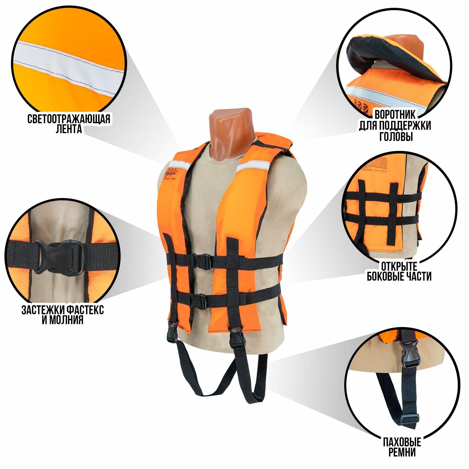Жилет спасательный MEDNOVTEX взрослый, двусторонний, до 150кг, оранжевый