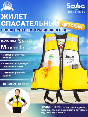 Жилет спасательный детский SCUBA BROTHERS крабик, желтый, р-р S интересное: