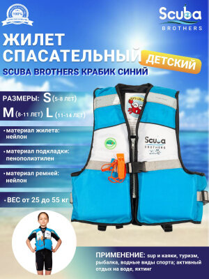 Жилет спасательный детский SCUBA BROTHERS крабик, синий, р-р S интересное: