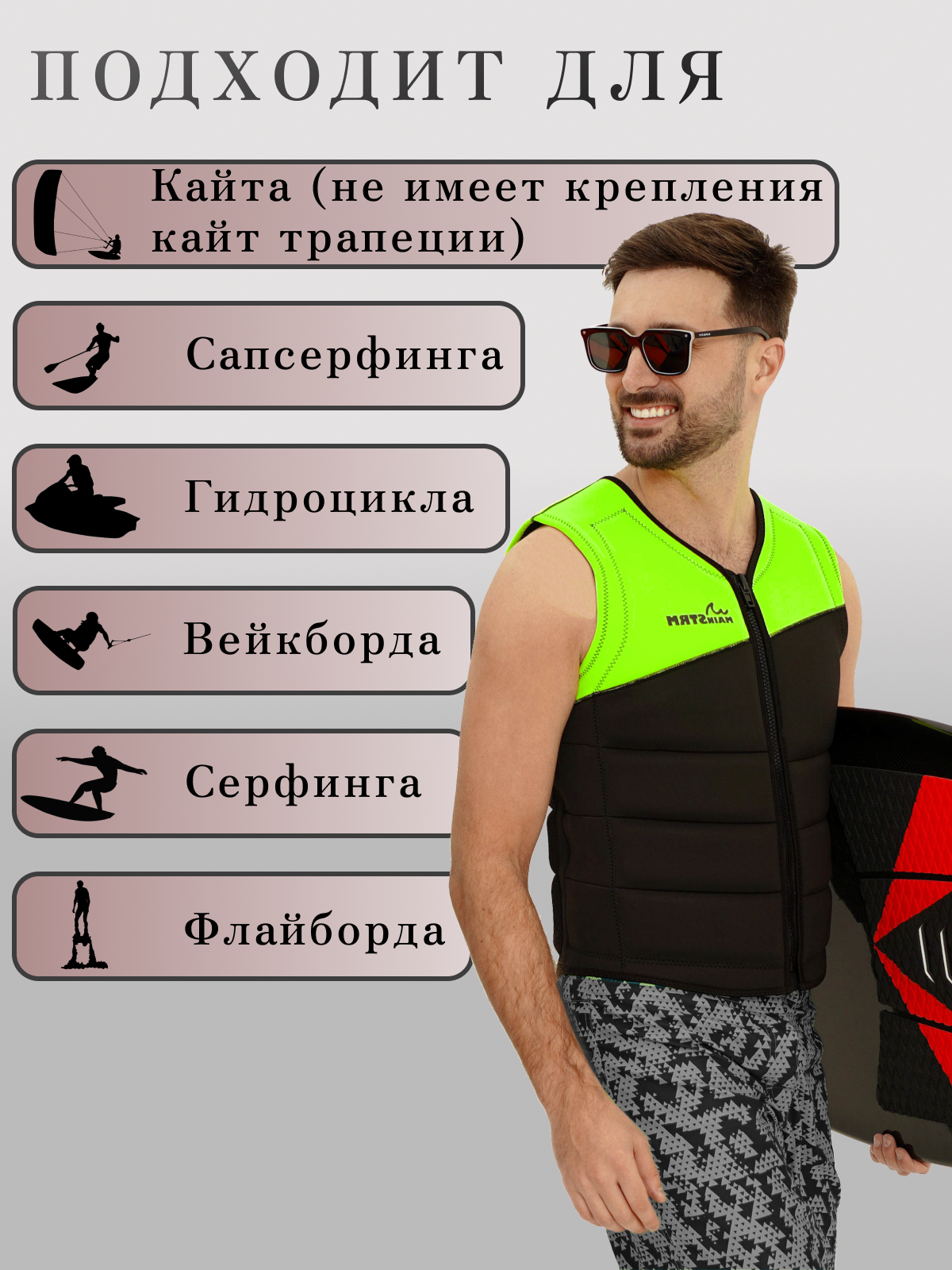 СохранитьЖилет спасательный MainSTRM Pro, неопреновый, для водных видов спорта, вейкборд, гидроцикл, вейксерф, размер S интересное: