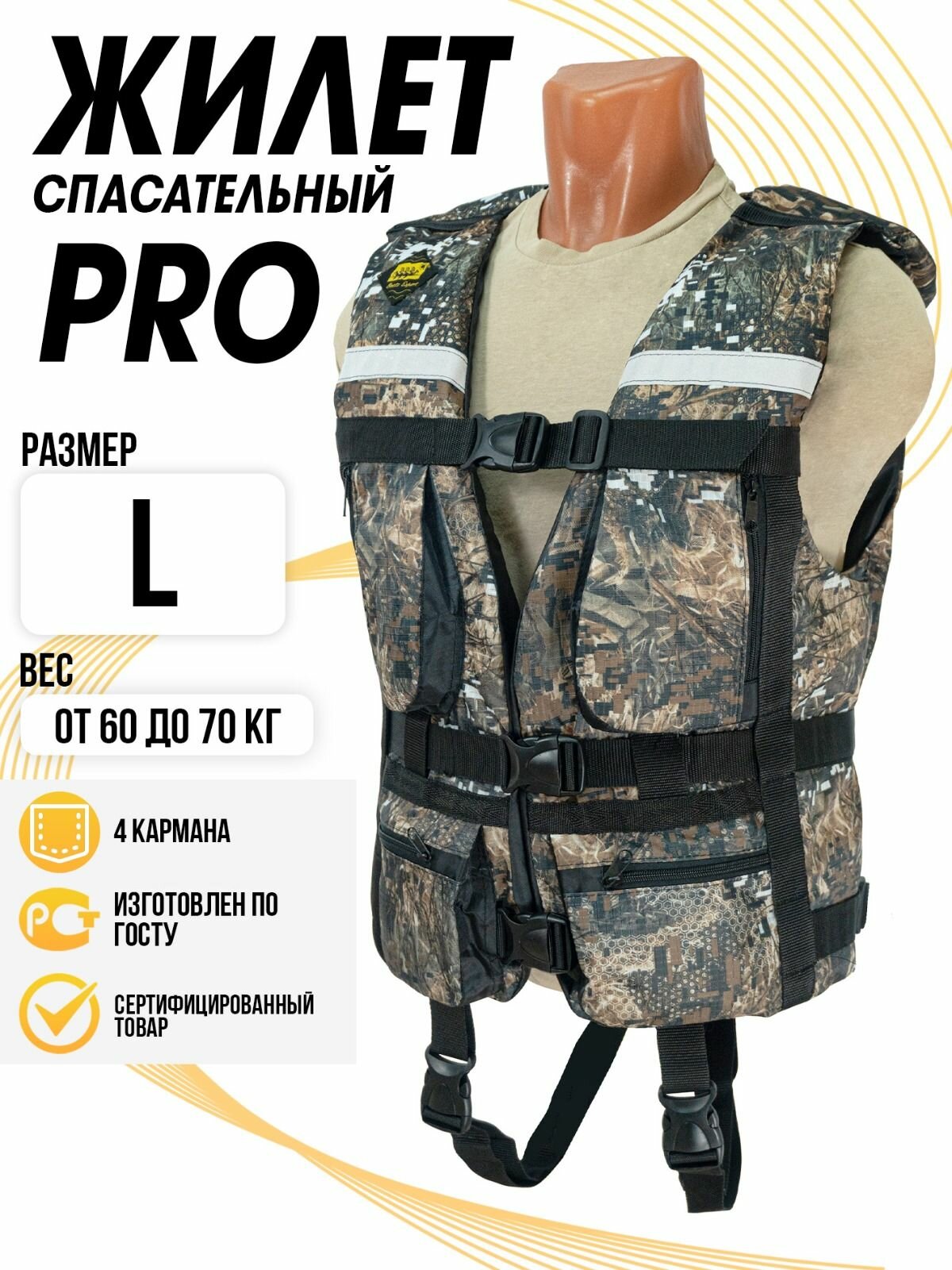 Жилет спасательный Таймень PRO L Камуфляж (48-50 размер)- вес 60-70 кг интересное: