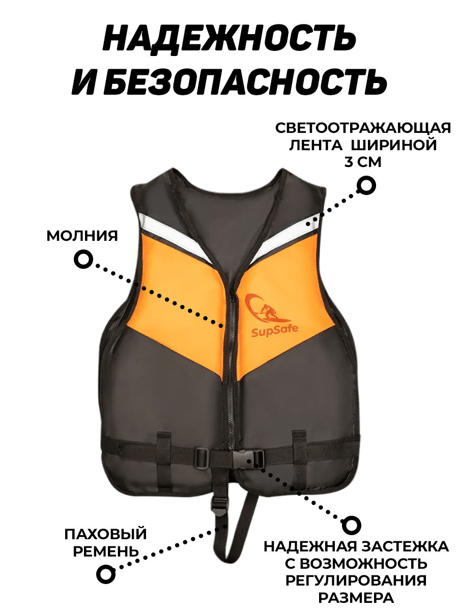SupSafe спасательный жилет до 50 кг, 42-44 черный; оранжевый интересное: