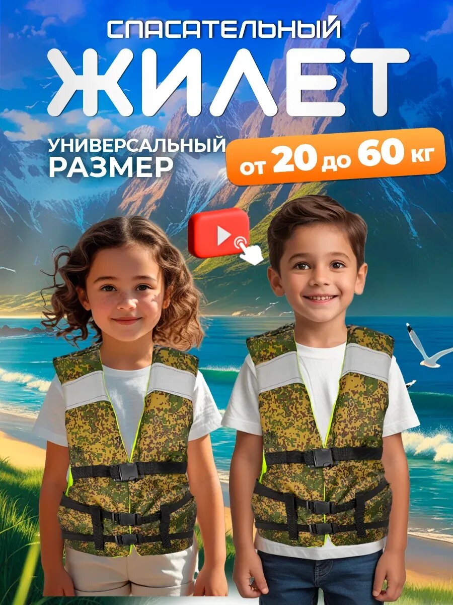Жилет спасательный YinFish, для взрослых, 20-60 кг, камуфляж интересное: