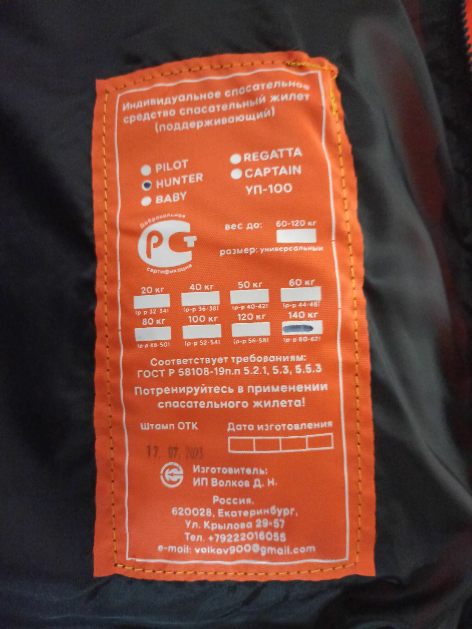 Спасательный жилет HUNTER гимс (р 60-62) 140кг. интересное: