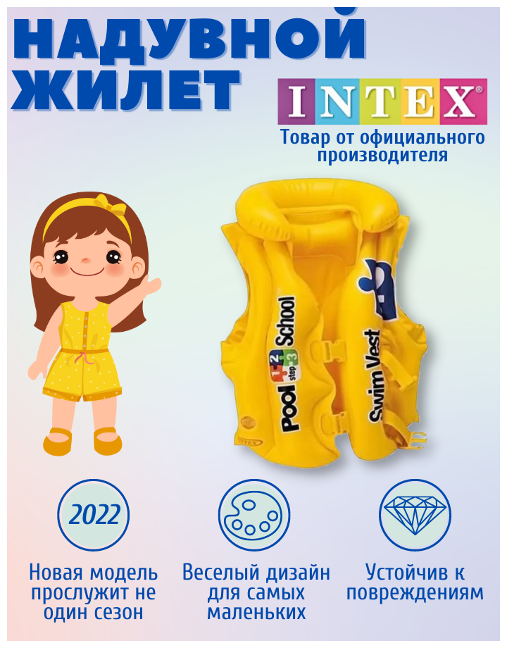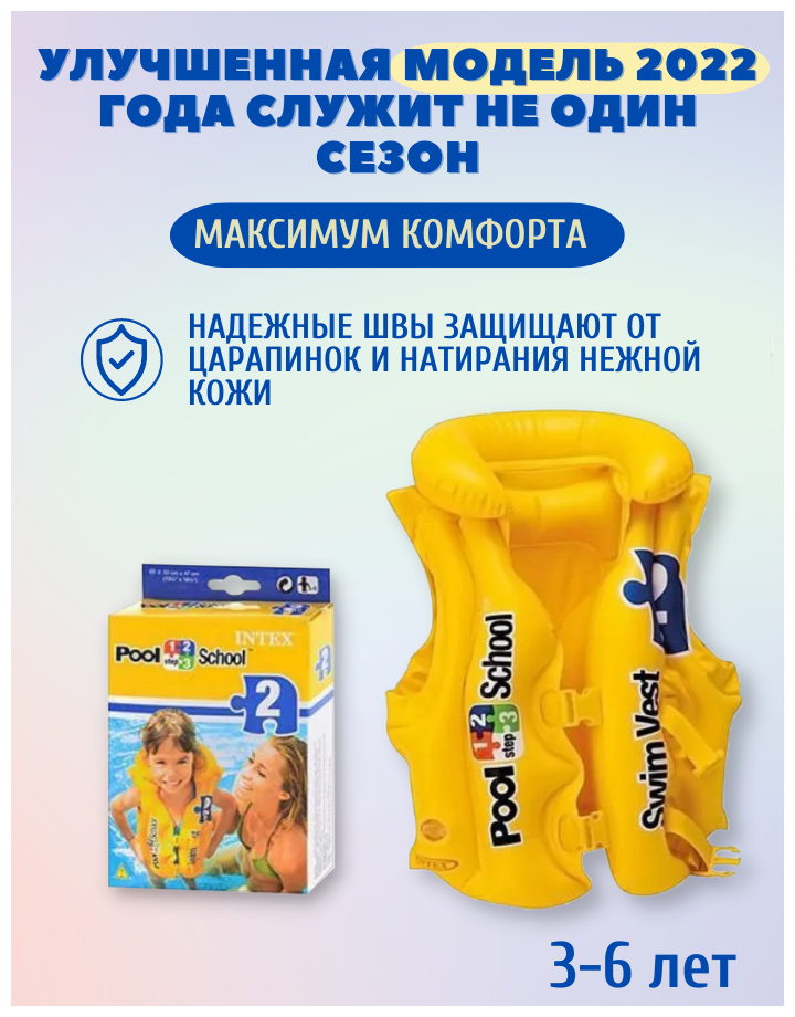 Жилет надувной INTEX Pool School Deluxe Swim Vest(Делюкс Пул Скул), 3-6лет, желтый интересное: