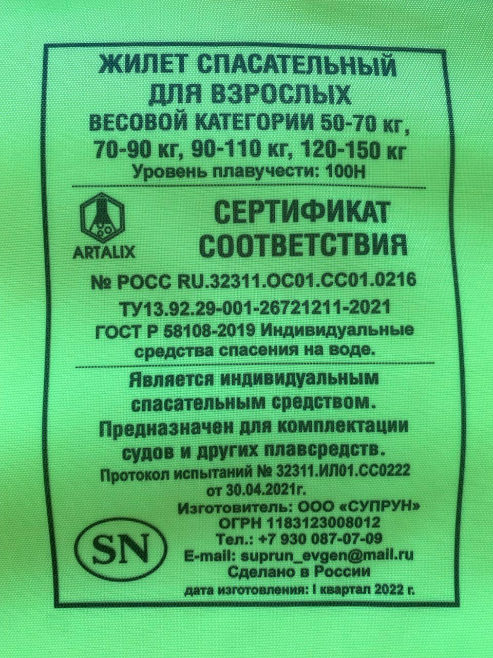 Жилет спасательный сертифицированный Forest river (90-110 кг) интересное: