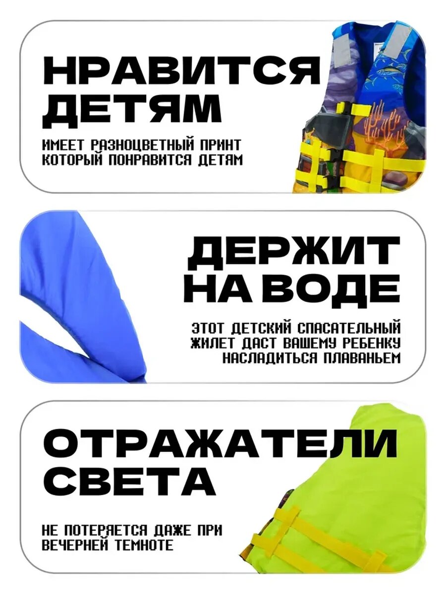 Жилет спасательный детский, нагрузка до 60 кг, светоотражатели интересное:
