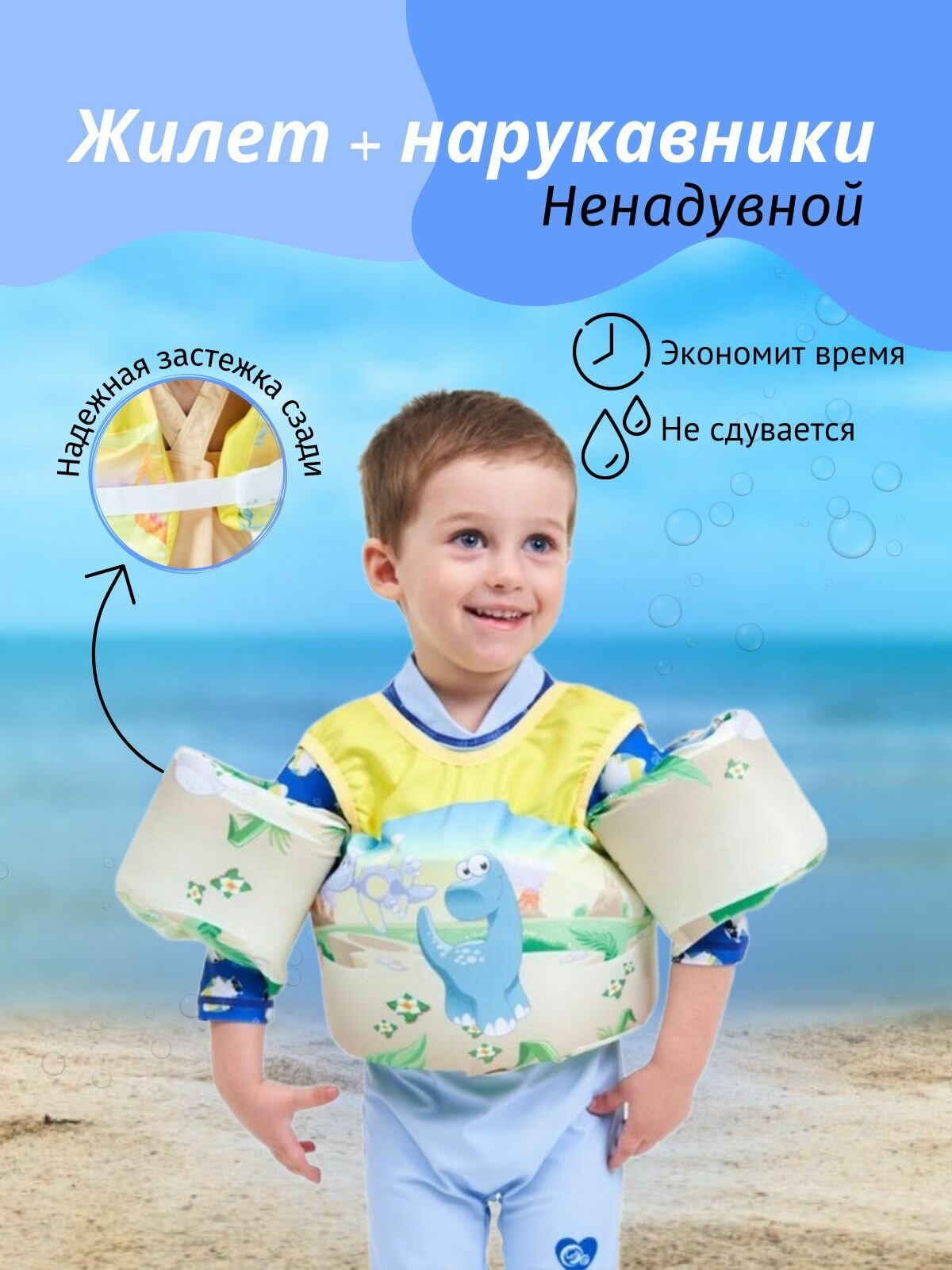 Жилет для плавания детский с нарукавниками, Детский жилет для плавания, динозавр интересное: