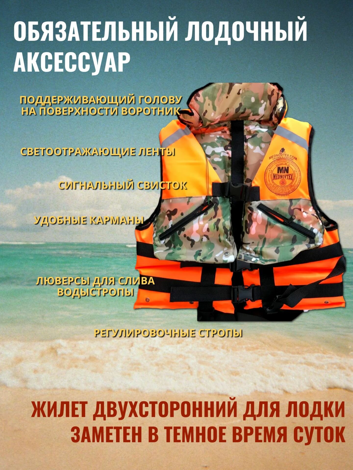 Жилет спасательный MEDNOVTEX взрослый двухсторонний до 80кг, оранжевый интересное: